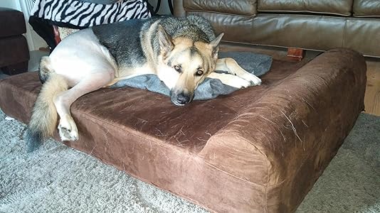 My only regret is I ordered the XL for our 100 pound German Shepherd and while it is a great size, he definitely fits on it and can sleep comfortably, a Giant would have been better because he likes to stretch out when he sleeps and lounges. But that was my mistake, no fault of the bed itself. Also, he recently had surgery and is unable to get upstairs to sleep on the Queen guest bed which he loves, so we needed a good supportive bed that would aid him in his healing process. We took a chance ordering this online but it had such great reviews we were confident it would be a great purchase. And we weren’t let down! This is the ONLY dog bed he has actually every slept in, it’s supportive for his aging hips and the cover is very soft which just adds to the coziness. He loves the headrest as well. I also found my husband sleeping on it recently and I know he is picky about his bed so it’s a win all around. Thanks for making a great product for our big fur babies!